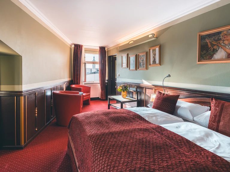 Welcome to the Hotel Haštal Prague Old Town gallery. Here, you can explore photos of our elegant rooms, cozy interiors, and authentic details that make every stay memorable. In addition, you’ll find glimpses of our stylish bar, breakfast area, and the charming streets of Prague nearby. Each image tells a part of our story — blending history, comfort, and design. So, take a moment to browse and imagine your next visit with us.